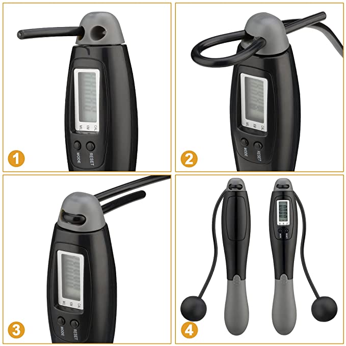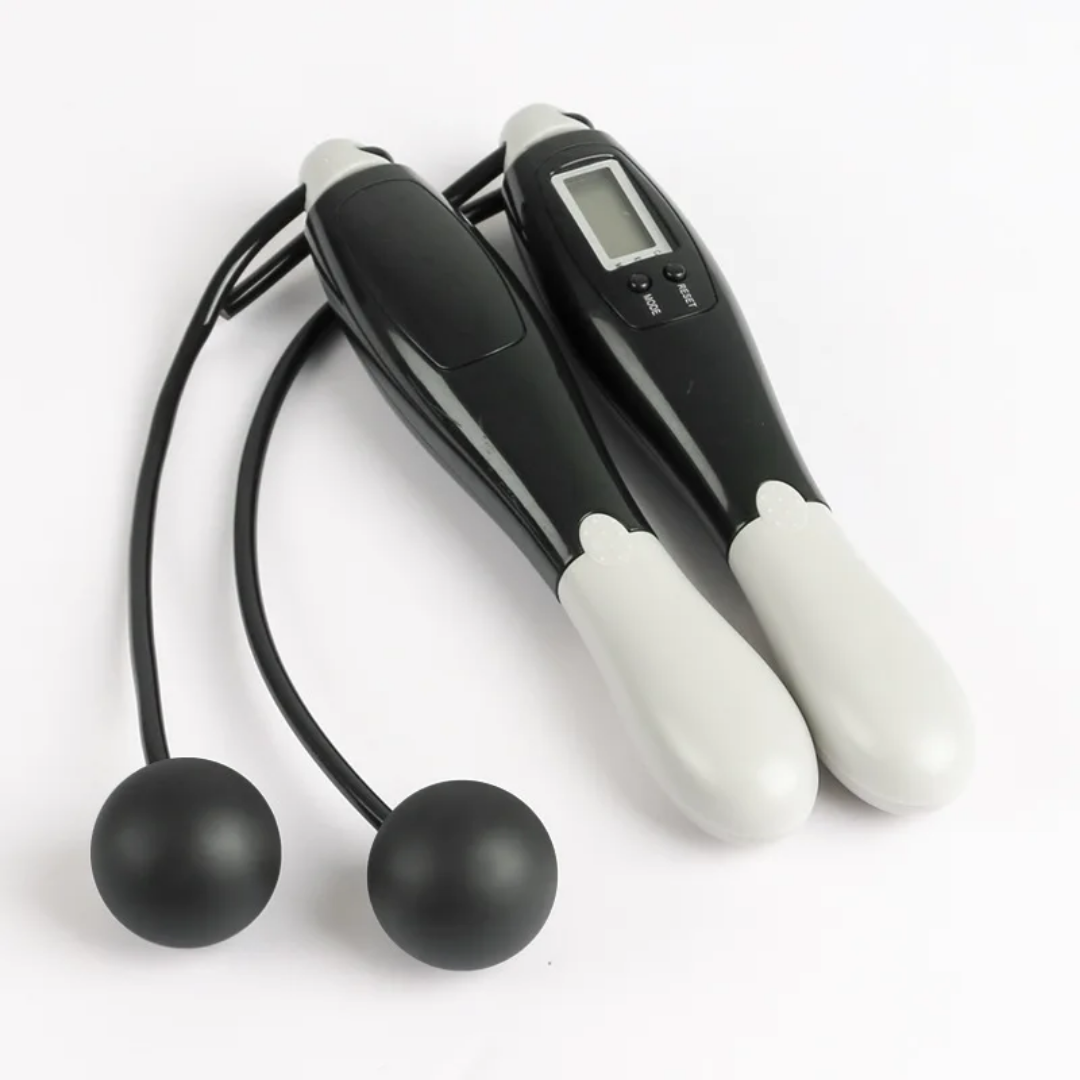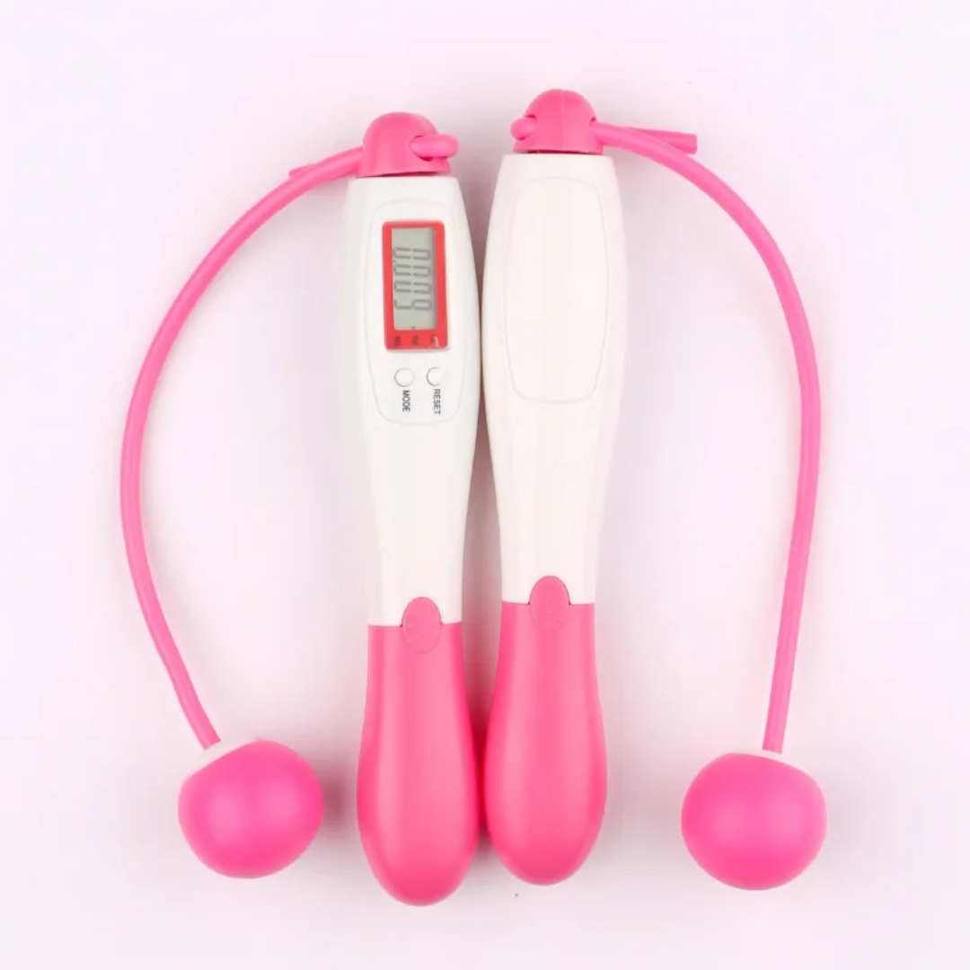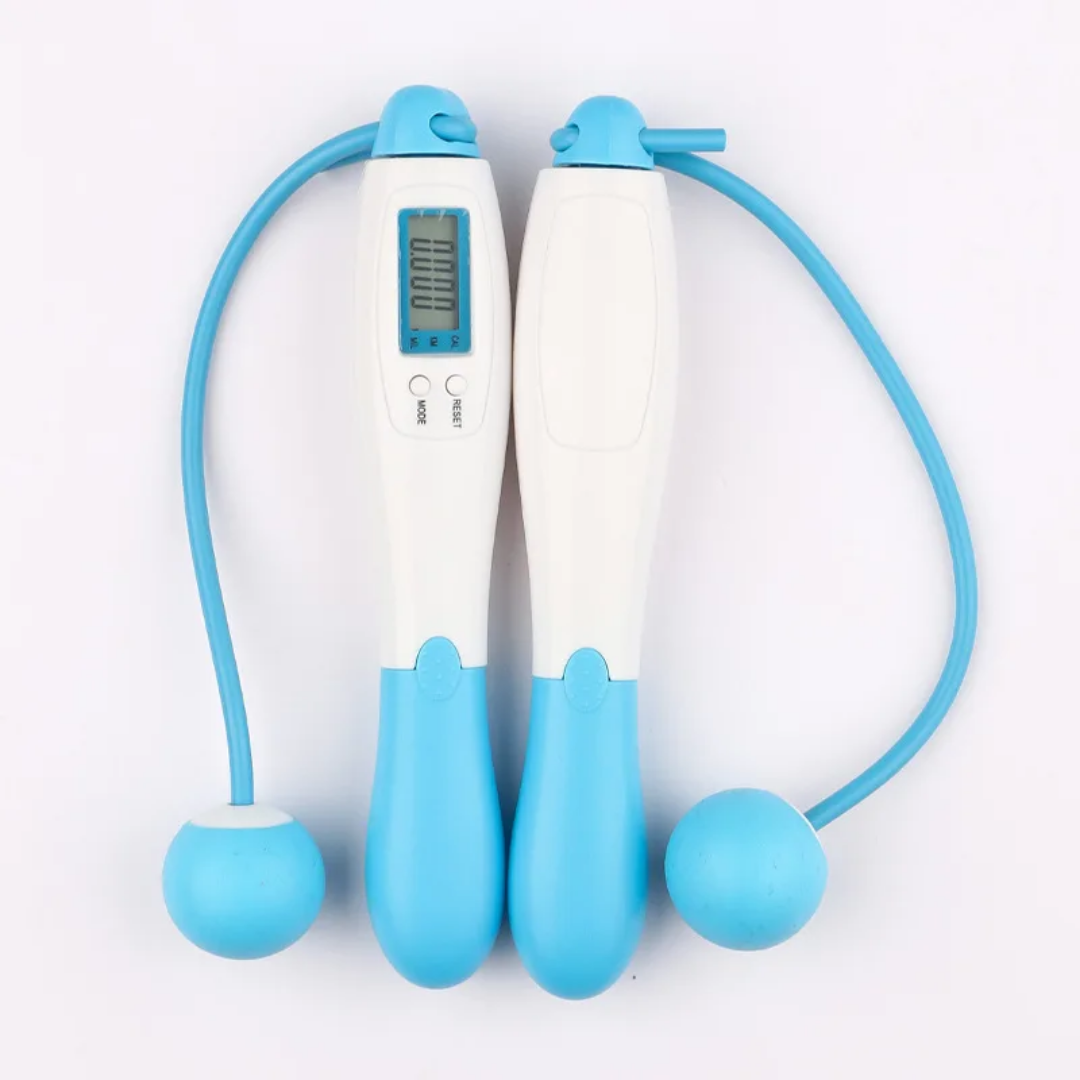 L’écran digital affiche non seulement les sauts, les calories et la distance, mais aussi le décompte du temps. Tu peux voir le nombre de minutes écoulées, idéal pour contrôler ton rythme d’entraînement.